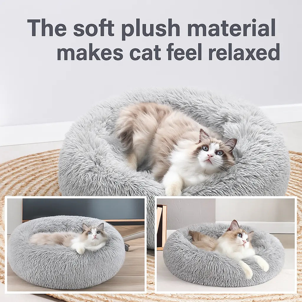 Transform any room into a soothing sanctuary with our Cat Calming Bed, thoughtfully crafted to give pets the deep rest and relaxation they crave. Wrapped in ultra-soft plush material, this bed mimics the feeling of warm companionship, helping even the most anxious cats feel safe, comforted, and at ease. Its donut-shaped design gently supports the body while encouraging the natural curling position cats love, turning every nap into a peaceful retreat.